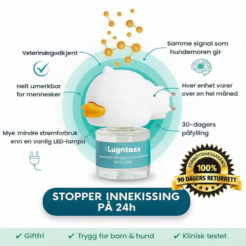 Ja. Lugntass™ er giftfri, luktfri for mennesker og lavt forbruk. Hvis hunden plutselig begynner å tisse inne eller viser smerte – utelukk medisinske årsaker med veterinær.
