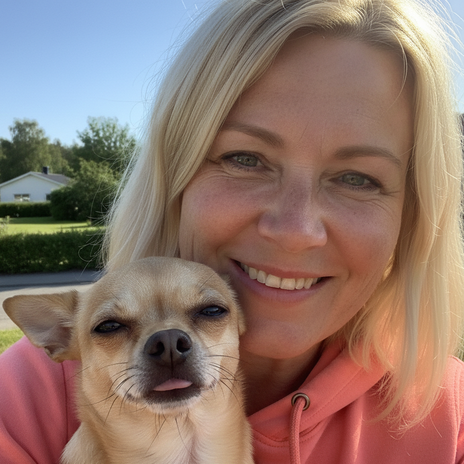 Vi hadde hele pakken: bjeffing når han var alene, destruktivitet og tissing/markering inne. Jeg trodde vi skulle kjempe i måneder. Etter at vi koblet inn Lugntass ble han merkbart mer avslappet – mindre bjeffing, mindre ødeleggelser og færre uhell. Vi følger fortsatt rutiner og trening, men nå føles alt mye lettere.