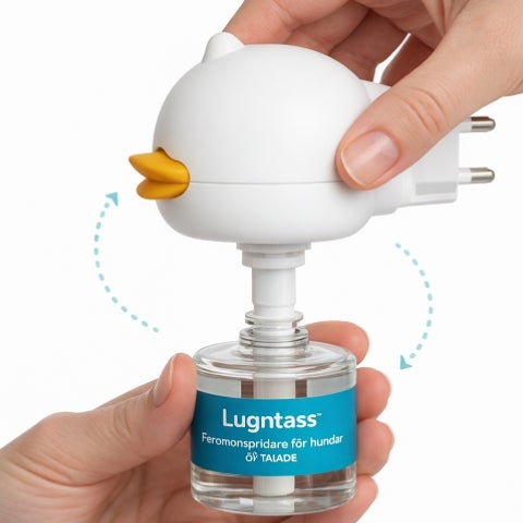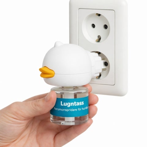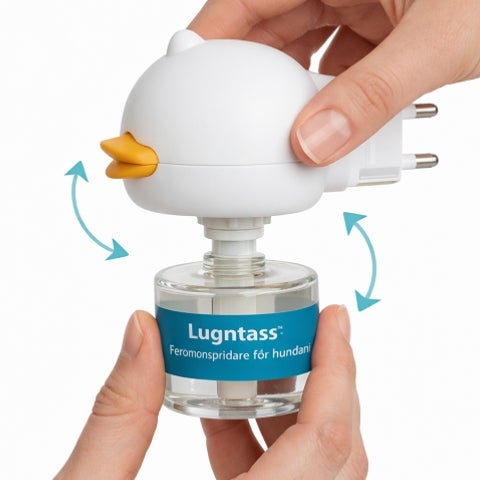 Når du setter inn Lugntass™ i stikkontakten, spres artspecifikke modersferomoner – samme type tryggetssignal hunder opplever som valper nær sin mor.
