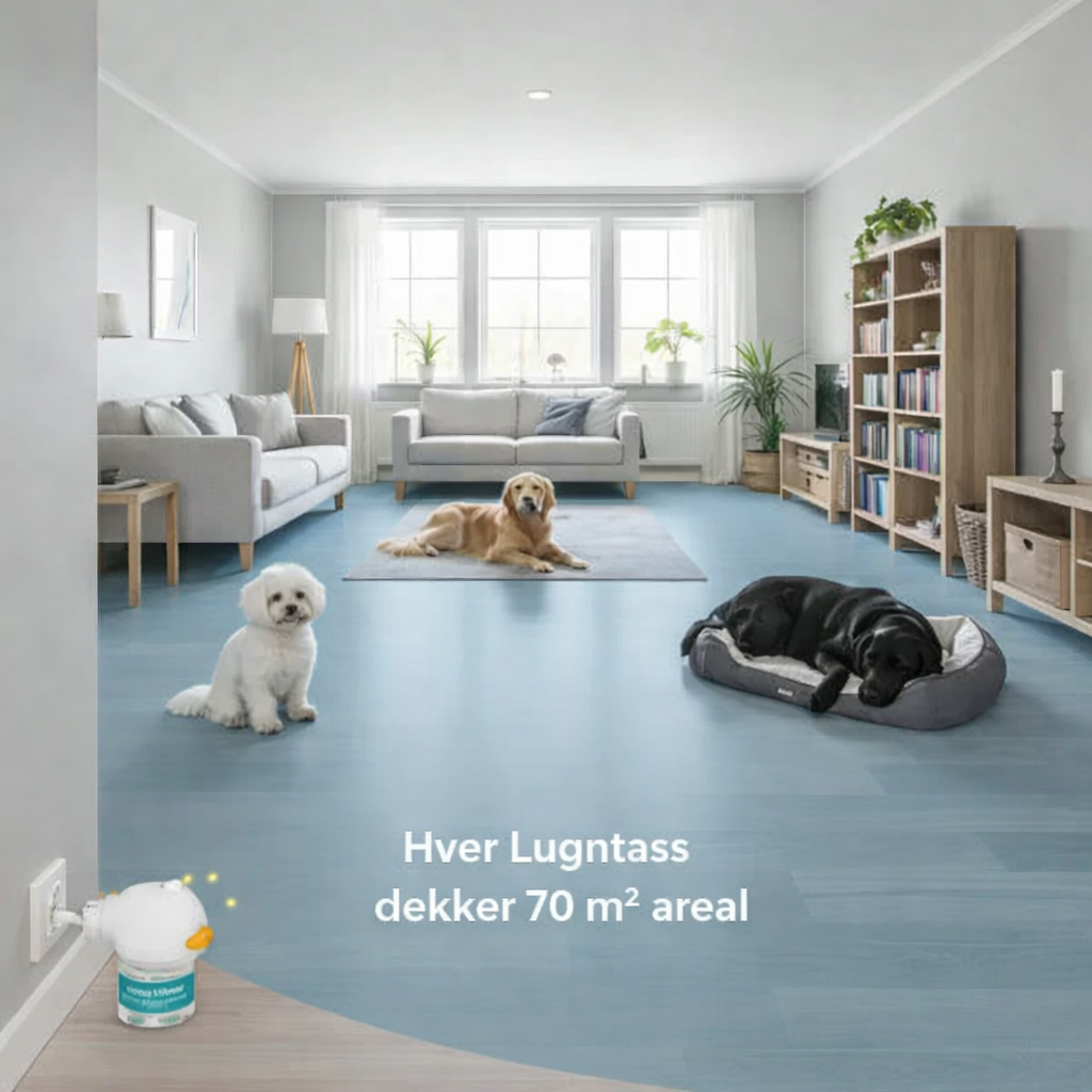 Lugntass™ kombinerer moderne feromonforskning med diskret, luktfri spredning – for et tryggere hjem og en roligere hund.